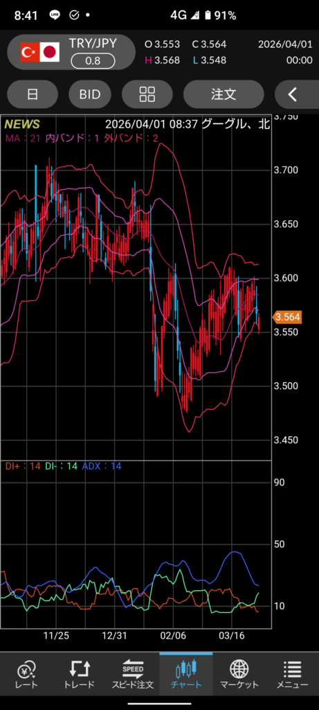 ちなみに、トルコ・リラは値動きが激しい危険な通貨のため基本1倍、つまりリバレッジはとらないようにしています。