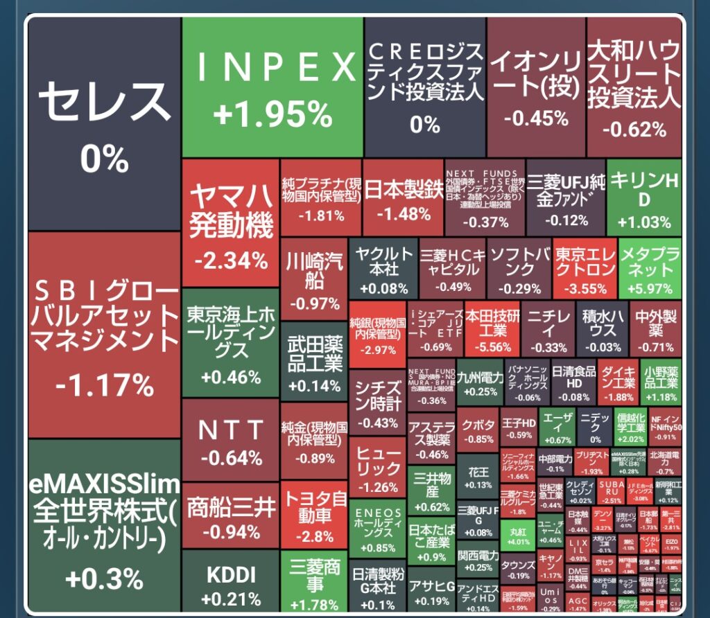 我が家のポートフォリオも下落中、一方でINPEXなど一部のエネルギー関連銘柄は上昇していたりします。